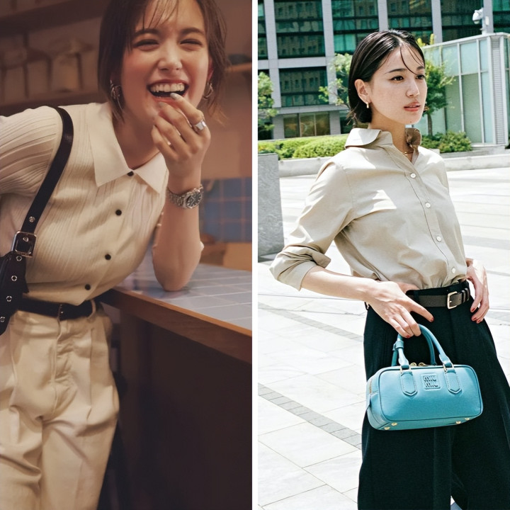 衬衫与黑裤的经典搭配,可通过“上紧下松”的时尚比例焕发新意,避免新人感。搭配有型包包更能提升整体造型的品味。